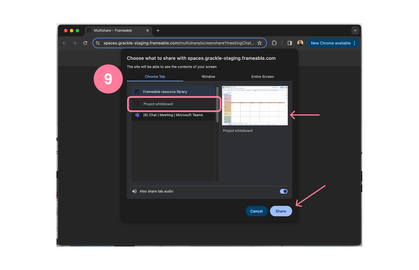 The MultiShare pop out window will automatically update to display your newly selected content.