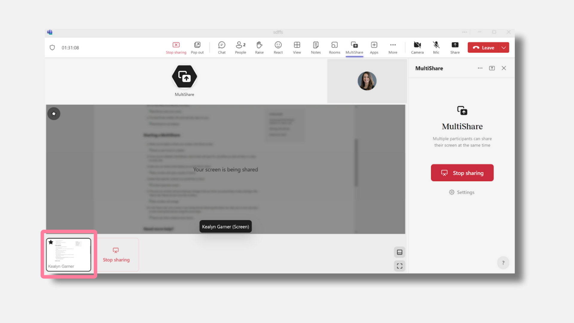 To stop spotlighting a screen, hover over the thumbnail again, click the three dot menu, and select ‘stop spotlighting.’